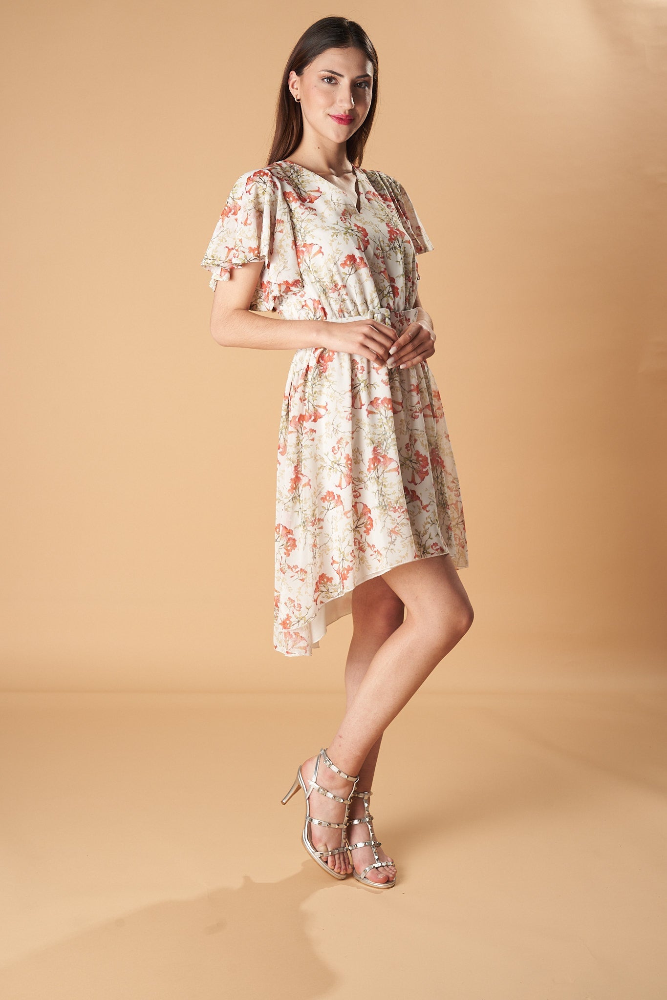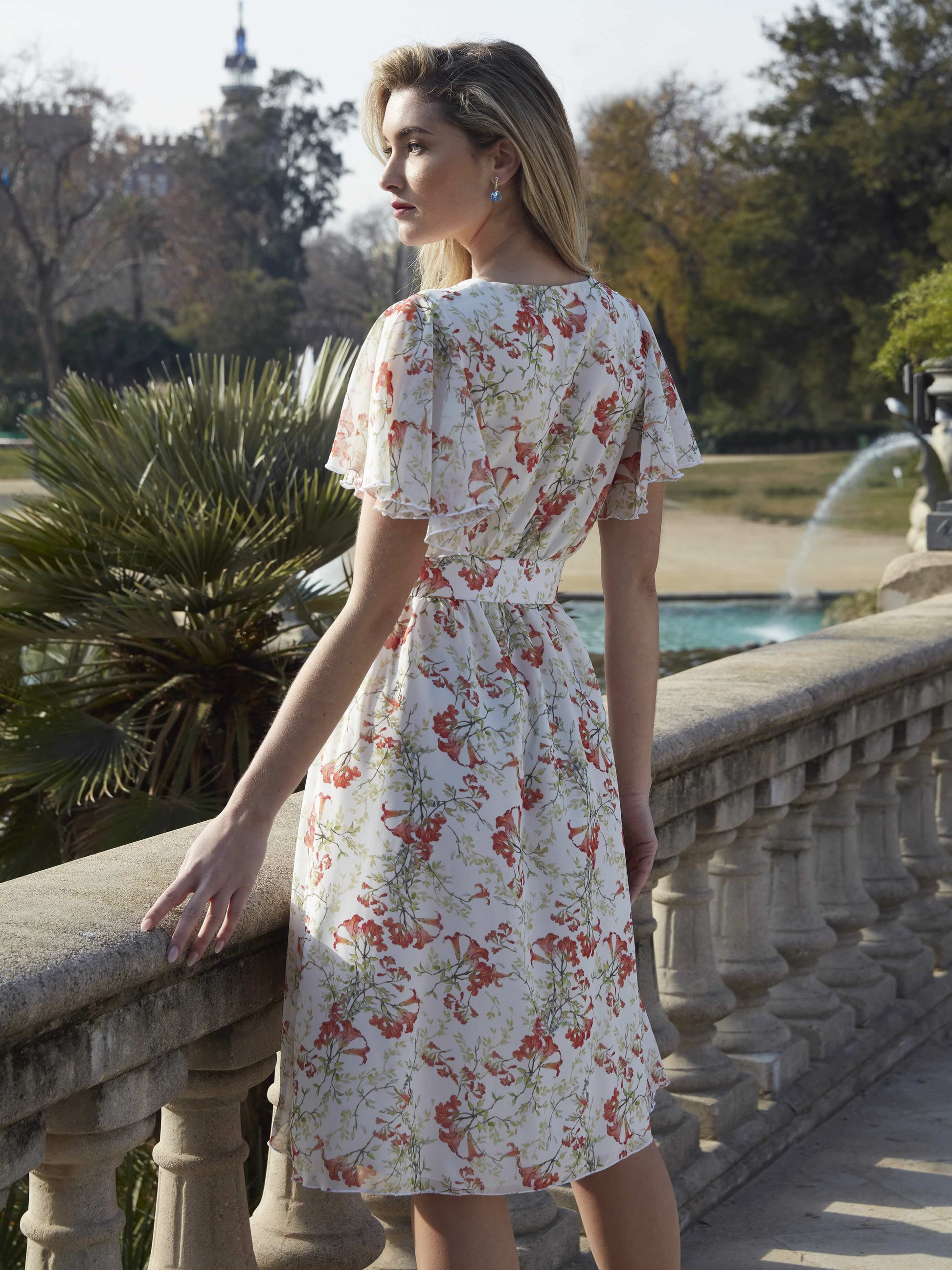 Vestido corto confeccionado en crepé ligero, perfecto para mantener la estructura sin renunciar al movimiento. El tejido tiene una textura suave al tacto, ideal para eventos de día, y se ajusta sutilmente con cinturón del mismo material. Juvenil, versátil y cómodo.